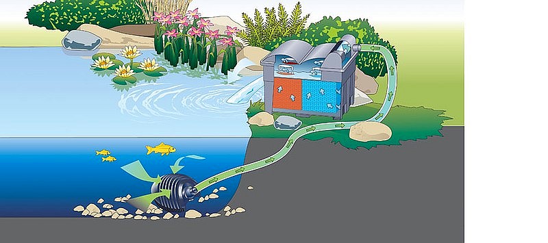 Zabezpečí čistú vodu vďaka kombinácii mechanickej a biologickej filtrácie s efektívnou UVC technológiou. Set obsahuje čerpadlo a 9W UV lampu ktoré sú vhodne vzájomne dimenzované. Jednoduchá údržba filtra vďaka indikátoru hladiny znečistenia, čistiacim držiakom a odkaľovaču bahna. Vhodné pre jazierka do 7.000 litrov. Filter je možné zapustiť do zeme 1/3 jeho výšky.