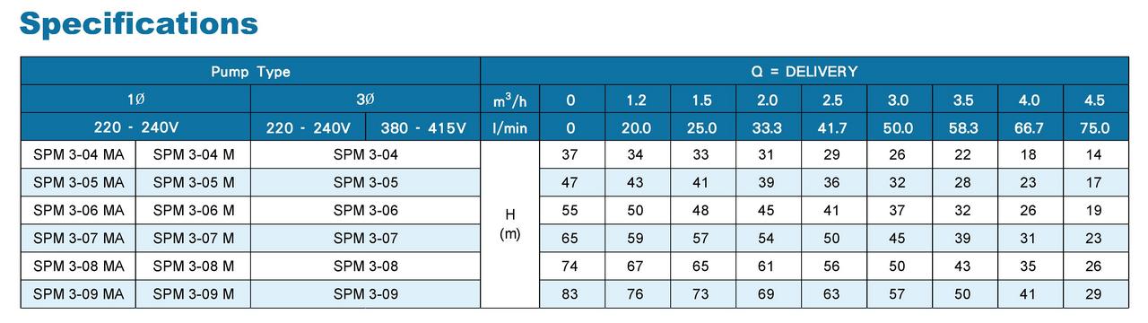 Ponorné čerpadlo SPM-3-07 MA je prémiové 5" celonerezové zariadenie s výkonom 0,75 kW a integrovaným plavákovým spínačom. Vďaka robustnej konštrukcii z ocele AISI 304 (vrátane obežných kolies) a možnosti horizontálnej inštalácie je ideálne pre kopané studne a zberné nádrže. Zabezpečuje spoľahlivé zásobovanie vodou s výtlakom až 65 metrov a dlhú životnosť.