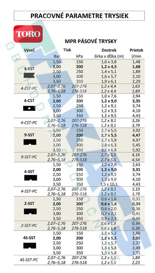 Toro sprejová tryska MPR 9SST,stred - dlhý okraj, pás 2,7 x 5,5 m