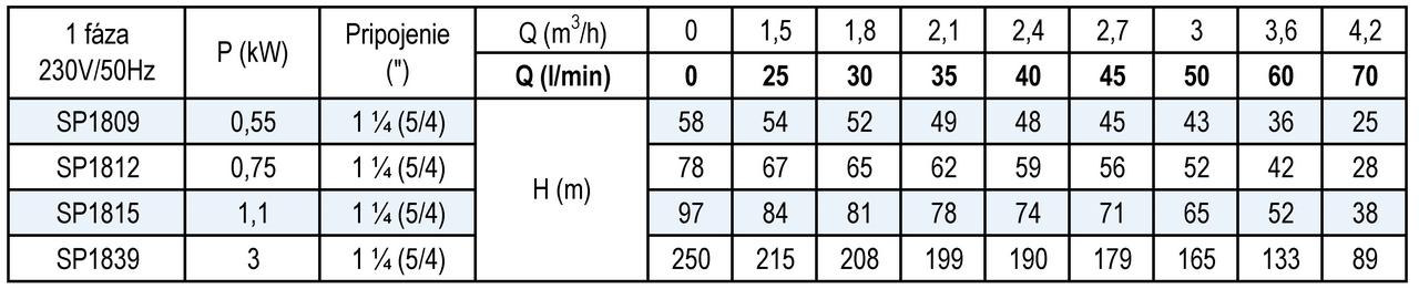 - Maximálny výtlak: 250 m