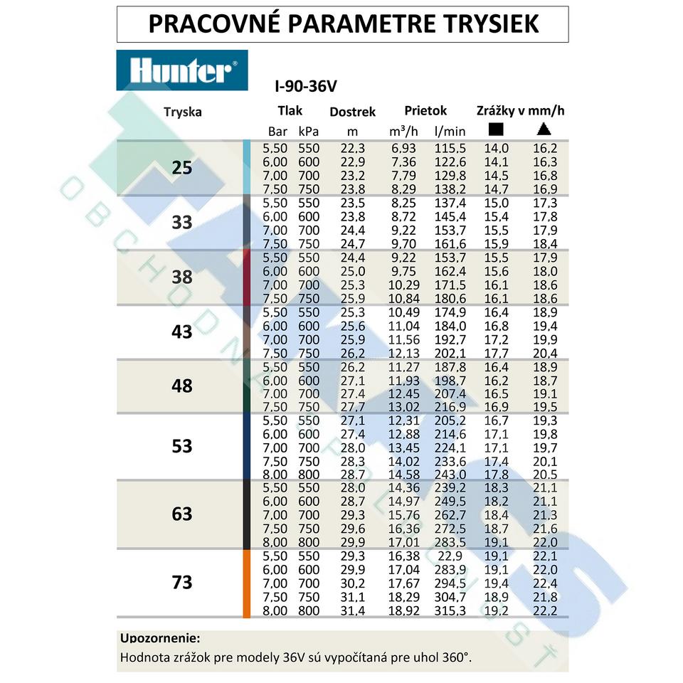 Hunter rotačný celokruhový postrekovač I-90-36V-B, výsuv 8 cm + sada trysiek